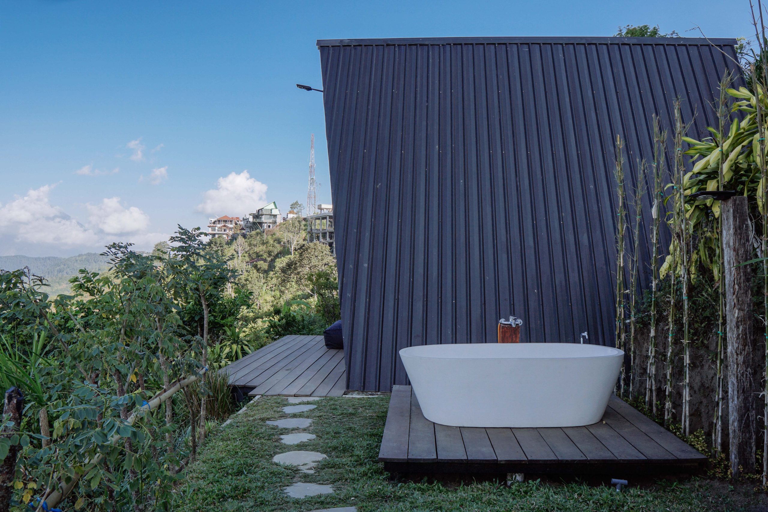 The true highlight awaits outdoors: a private open-air bathtub where you can soak in warm water while taking in the serene landscape and fresh mountain air. A peaceful retreat where simplicity, warmth, and nature come together.